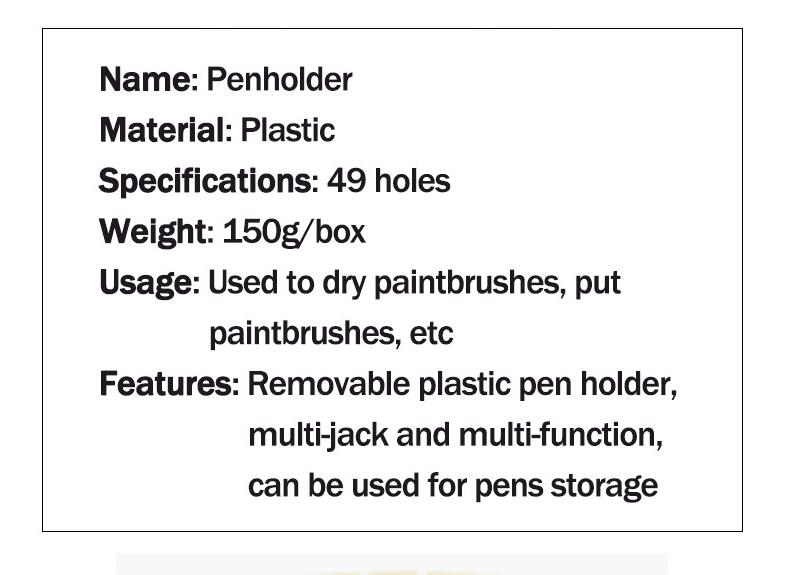 This simple brushes holder can fit 49 brushes, it’s great for arranging your brushes and preventing them from getting scattered all over the place. Keep your brushes nice and well ordered with this paint brushes holder. An ideal complement for any artist.