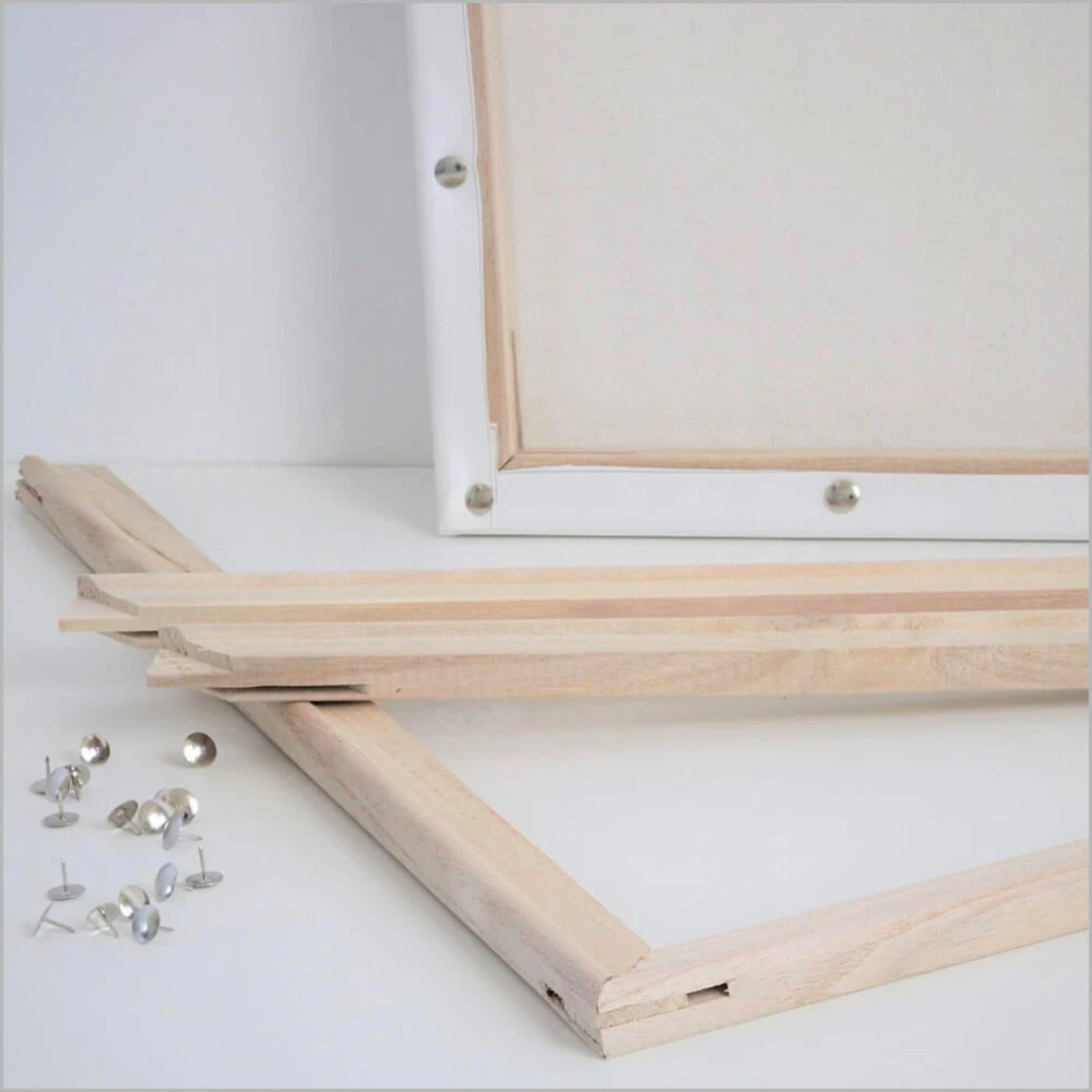 Easy to assemble. Might need a hammer to knock pieces together. Also a small bit of sand paper for any rough edges. Comes with the thumbtacks you need.