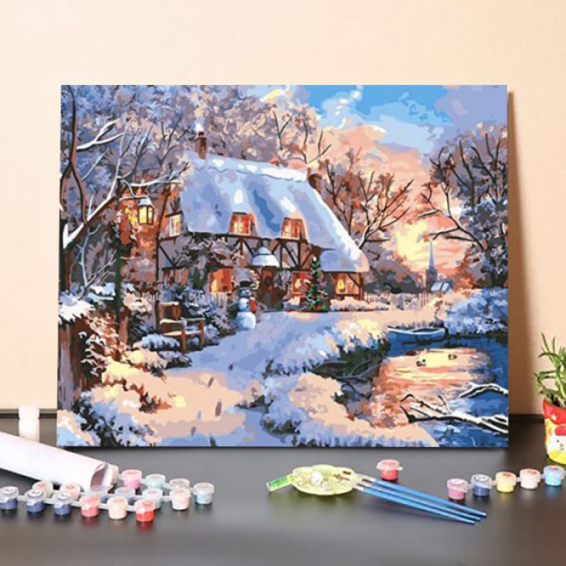 Winter House by The Lake-Paint by Numbers Kit